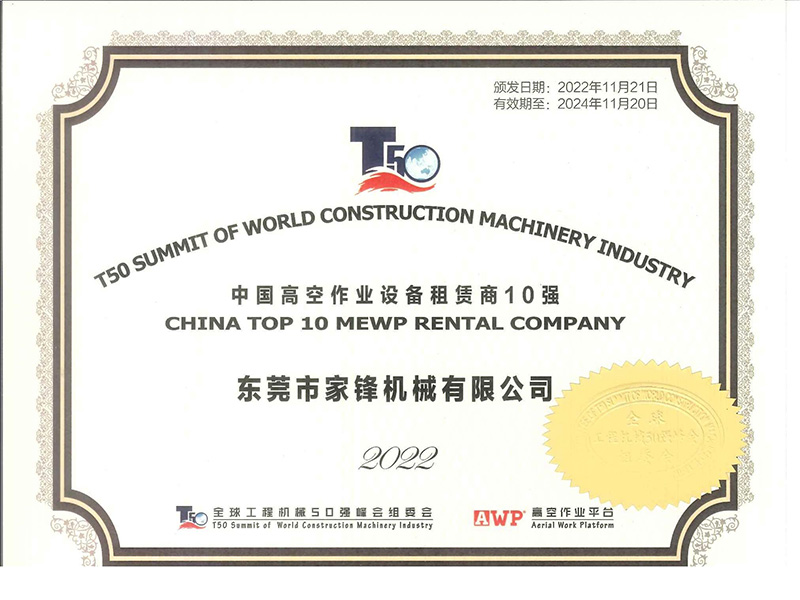 東莞市家鋒機(jī)械有限公司成立于2016年,是專(zhuān)業(yè)的高空作業(yè)平臺(tái)租賃、銷(xiāo)售服務(wù)商,擁有徐工、中聯(lián)、吉尼、捷爾杰等國(guó)內(nèi)外知名品牌的高空作業(yè)設(shè)備八千多臺(tái),連續(xù)四屆榮膺“中國(guó)高空作業(yè)設(shè)備租賃商十強(qiáng)企業(yè)”及“中國(guó)高空作業(yè)平臺(tái)租賃業(yè)十大品牌”,并于2021年首次榮膺“中國(guó)工程機(jī)械租賃商十強(qiáng)”,是立足華南、輻射全國(guó)、規(guī)模大、服務(wù)優(yōu),極具競(jìng)爭(zhēng)力和影響力的企業(yè)。短短幾年,已相繼與世界機(jī)械巨頭徐工集團(tuán)、中聯(lián)重科達(dá)成戰(zhàn)略合作。